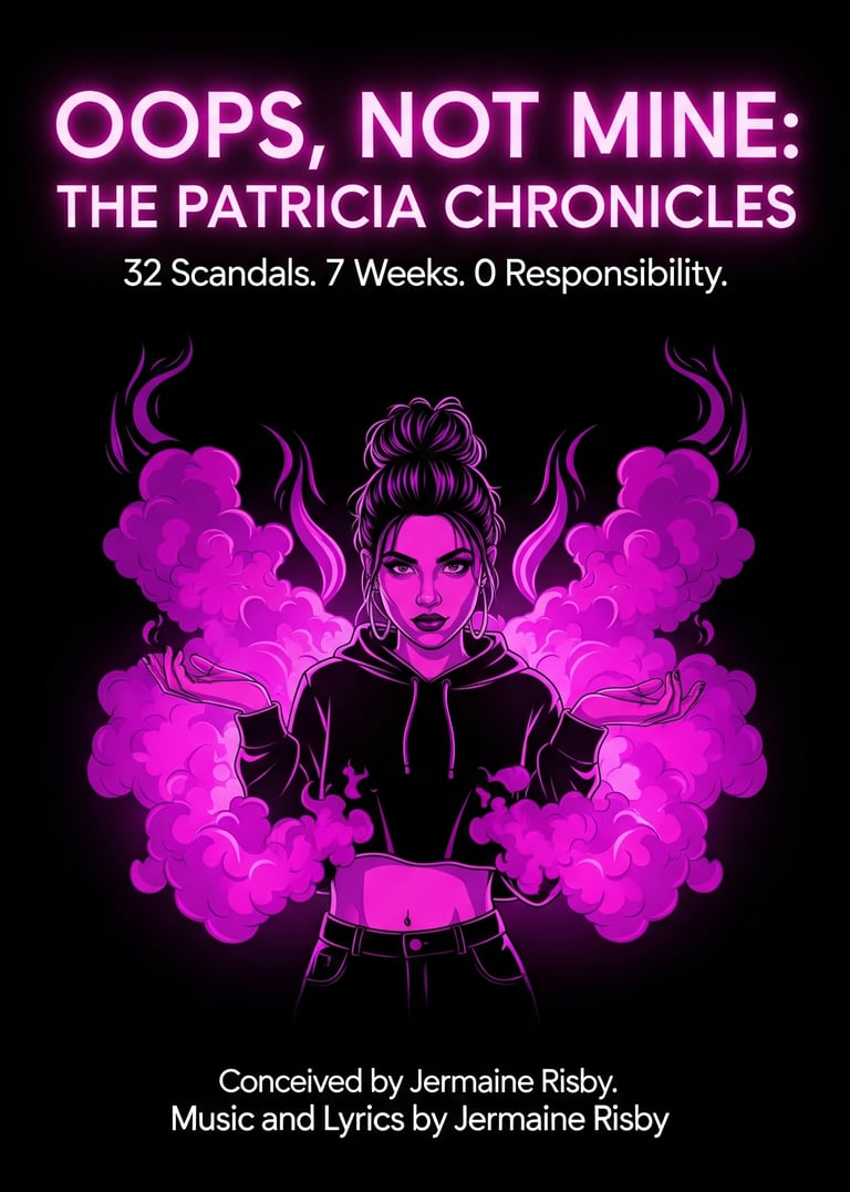 "Oops, Not Mine: The Patricia Chronicles" is a sharp-witted, neon-soaked musical satire that plays like a Sunday comic strip written by a disgruntled publicist. Inspired by the structural whimsy of You’re a Good Man, Charlie Brown and the cynical bite of Stephen Sondheim’s Company, the show is told through a series of punchy, fast-paced vignettes.