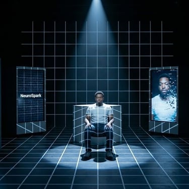 The narrative is framed as a journey from feeling like a "broken, faulty system" to embracing a "custom-built" internal architecture. The production utilizes extensive projections to create a dynamic neural network that evolves from a cold, corporate aesthetic into a vibrant, Afrofuturist blueprint. Musically, the show is an eclectic "symphony" that synthesizes Bach-inspired cello, Sondheim-style theater, 90s pop, and K-pop