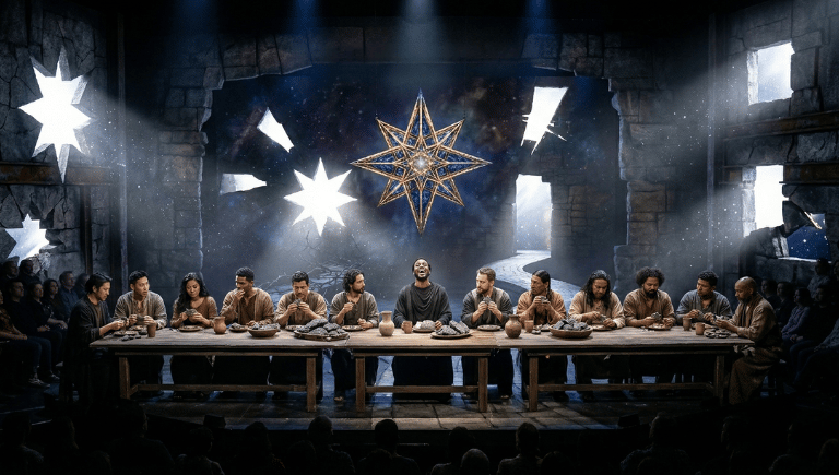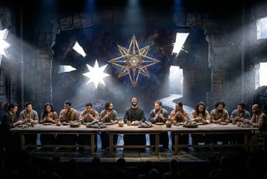 The story begins at the table of "The Wrong Prayer." As the disciples perform a ritual to a god of bread and law, Jesus shatters their comfort with laughter, revealing they are worshipping the Demiurge—an ignorant architect who built a box with no door. Through the "Star’s Descent" suite, Jesus identifies Judas as the "Thirteenth Star," the only one brave enough to look past the physical form.