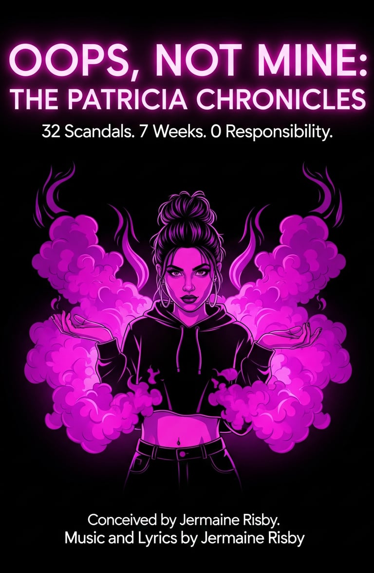 "Oops, Not Mine: The Patricia Chronicles" is a sharp-witted, neon-soaked musical satire that plays like a Sunday comic strip written by a disgruntled publicist. Inspired by the structural whimsy of You’re a Good Man, Charlie Brown and the cynical bite of Stephen Sondheim’s Company, the show is told through a series of punchy, fast-paced vignettes.